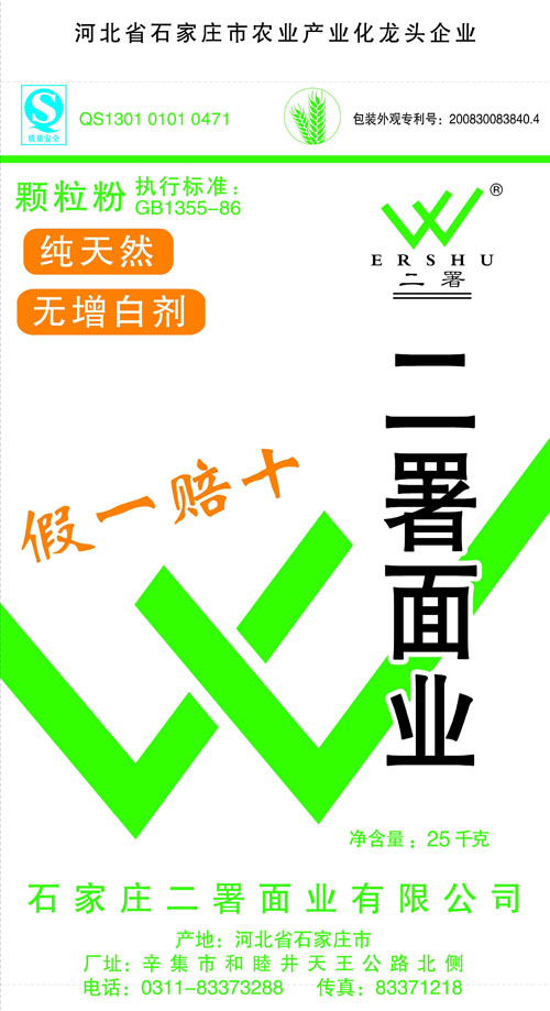 二署面業有限公司創建于1989年,現已具備日處理小麥300噸的能量,產品質量穩定,深受客戶青睞。 二署面業地理位置優越,北靠307國道石黃高速,南鄰石德鐵路,衡井國道,交通十分方便,為貨物運輸提供保證及時運輸的天然條件。產品運銷:黑龍江、吉林、遼寧、河北、內蒙、陜西、山西等大中省份,贏得了廣大消費者的認可。